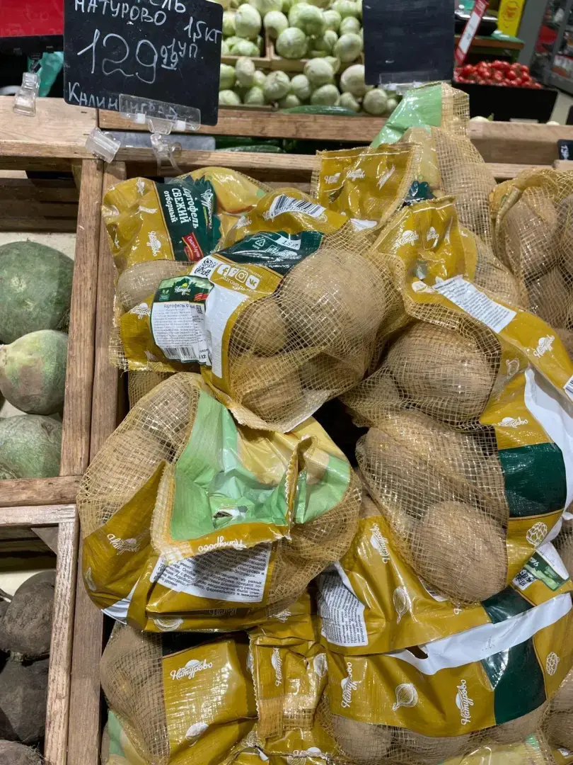 Картофель дороговатый. На уличных лотках он дешевле. Весовой можно по 50 руб. найти за кг, но он будет подмороженный. Поэтому, приходиться брать в супермаркетах.