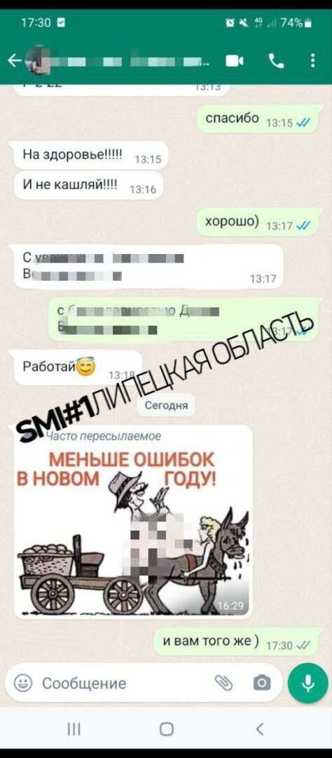 А в ТГ-канале «Липецк в Телеграм» кто-то из студентов выложил фрагмент переписки с этим преподавателем, в котором фигурируют пошлые картинки: