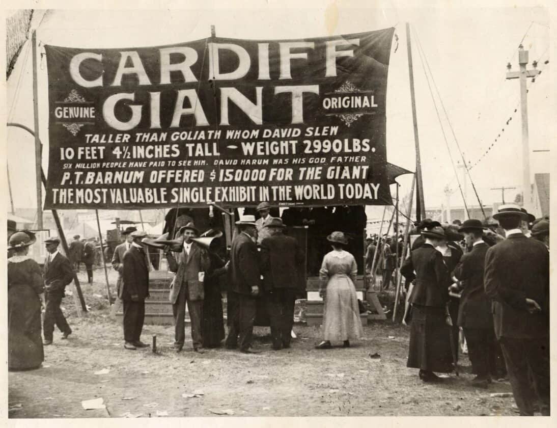 В 1901 году Кардиффский гигант выставлялся на Панамериканской выставке, но не привлёк особого внимания. Позже его купил издатель из Айовы для украшения своего жилища, а в 1947 году продал его Музею фермеров в Куперстауне, Нью-Йорк, где он экспонируется до сих пор.