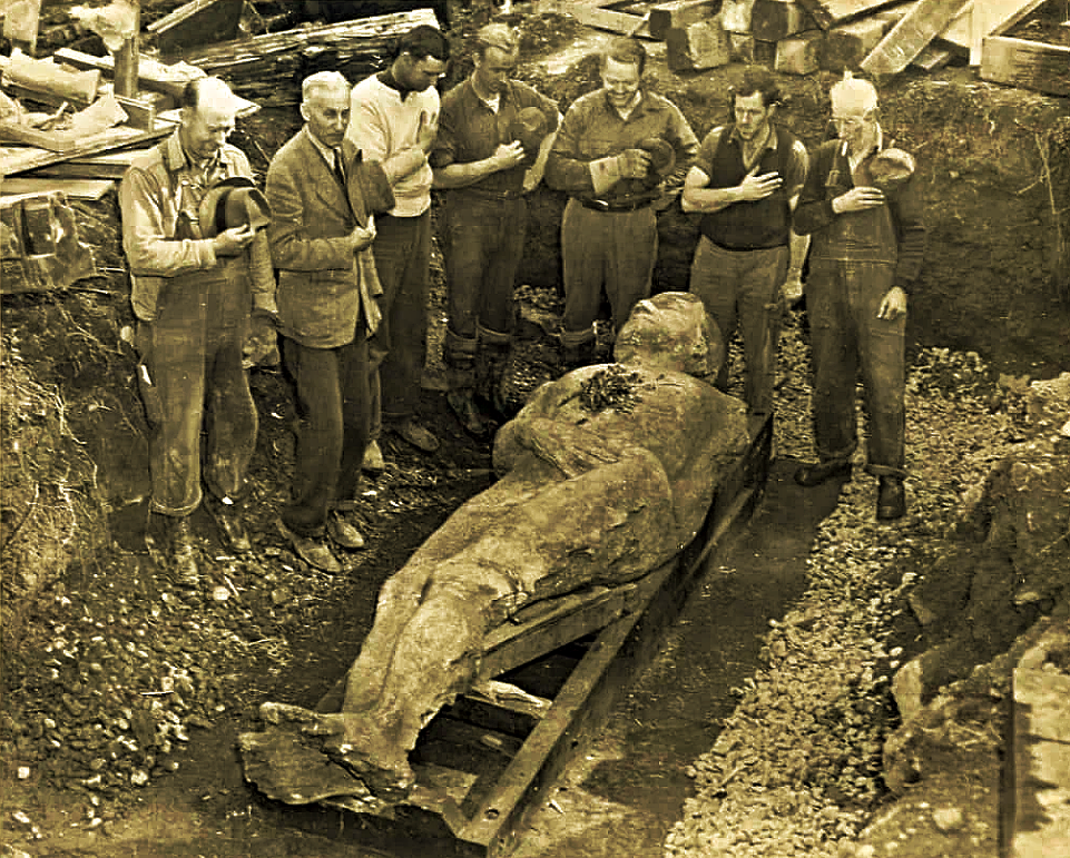 С нарастающим волнением они продолжили копать и были поражены, когда, наконец, обнаружили окаменевшие останки 10-футового (3-х метрового)человека.