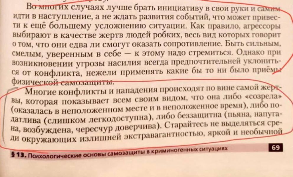 Авторы учебника рассказывают, что женщины чаще всего сами становятся жертвами насилия из-за короткой юбки или яркого макияжа.