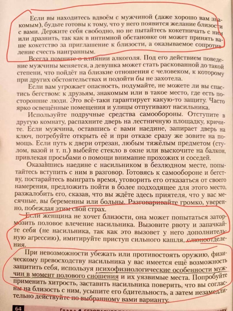 Один из параграфов учебника называется «Безопасное поведение девушек». Вроде бы неплохая тема, но...