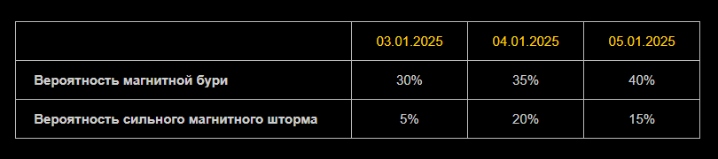 Однако, спокойствие окажется недолгим. 4 и 5 января индекс Kp достигнет 4-5 баллов, что указывает на умеренную магнитную бурю.