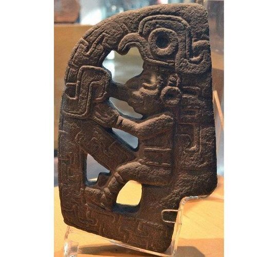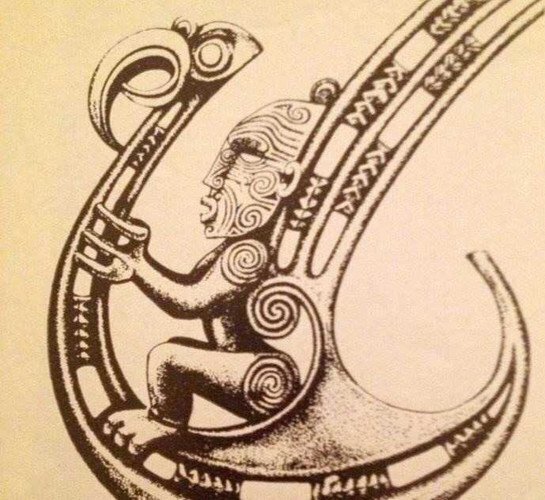 Изображения Пурангауа можно найти во многих украшениях или украшениях маори. На картинке ниже Пурангахуа изображен сидящим в своем летательном аппарате. В точно такой же позе, как бог ацтеков и тоже держащийся за что-то руками.