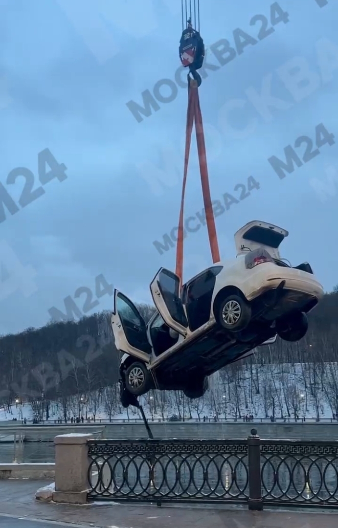 Спасатели достали вылетевший в Москва-реку автомобиль