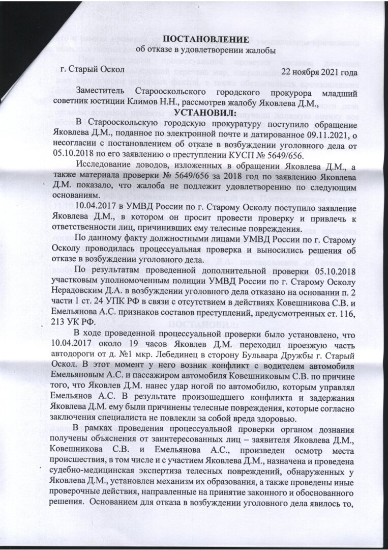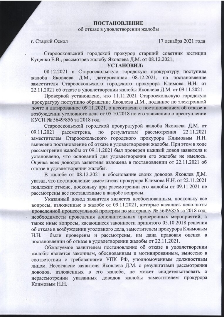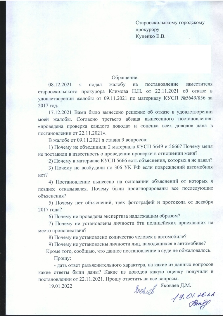 2) В материале 5666 есть объяснения, на основании которых вынесено постановление об отказе ВУД. Эти объяснения приписаны мне. С первого же дня как я обнаружил эти объясениня, в Старооскольском суде, я заявлял, что это не моя подпись и объяснения вижу впервые. Экспертиза не подтвердила принадлежность подписи. Считаю это основанием для отмены постановления вынесенного на основании объяснений где мою подпись подделали.