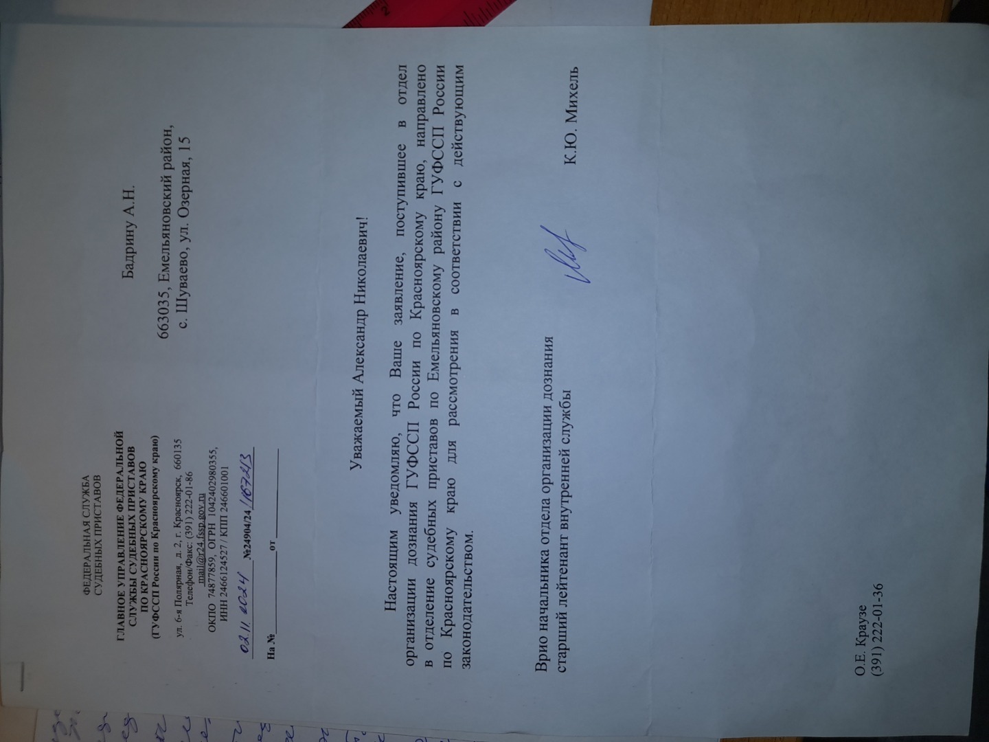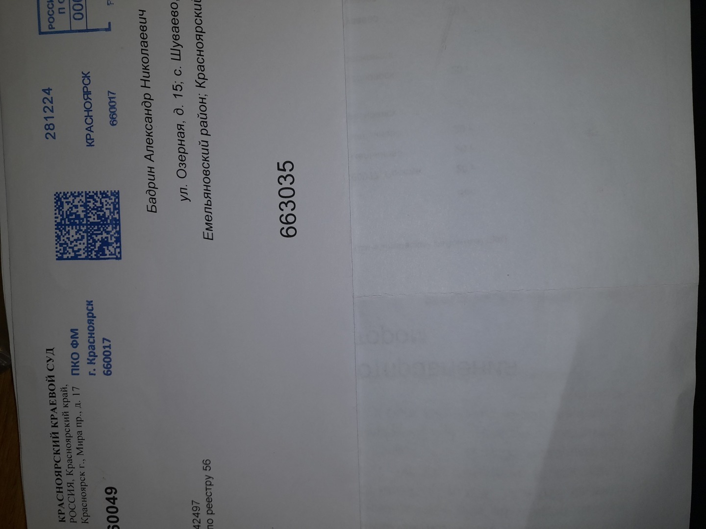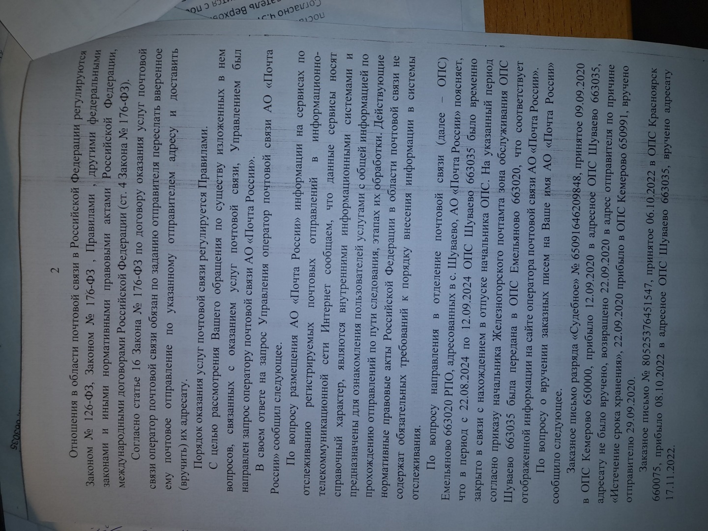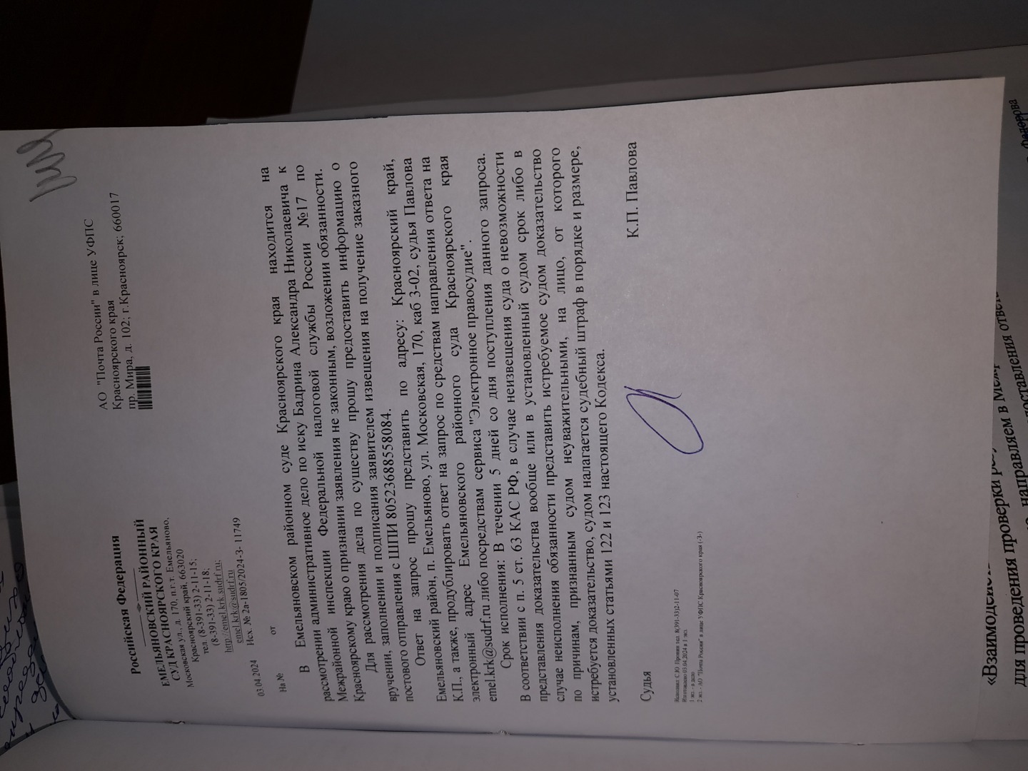 Добрый день.Сегодня в очередной раз поставлю Вас в известность как АО Почта России продолжает помогать судебной системе Красноярского края уходить и уводить своих судей от ответственности.Напомню была вот такая жалоба
