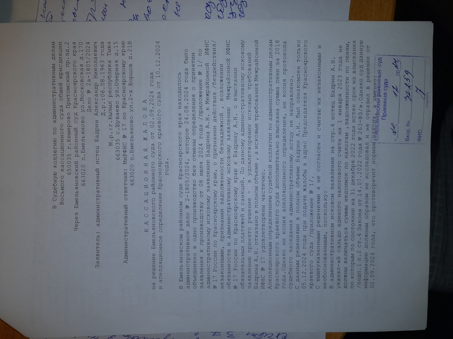 Когда нет ни извещения ни уведомления по фальсификации налоговой инспекцией направления в мой адрес налогового требования.Интересно кто в состоянии направить такой запрос в АО Почта России, чтобы вскрыть махинацию самой судебной системы?Интересно Е.Б.Гареева дает в ответе информацию о моем праве обращения с кассационной жалобой,которая уже с 20.12.2024 года лежит в суде первой инстанции БЕЗ ДВИЖЕНИЯ.