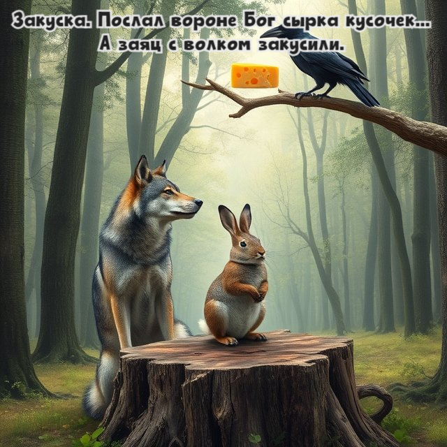 Закуска. Послал вороне Бог сырка кусочек... А заяц с волком закусили.