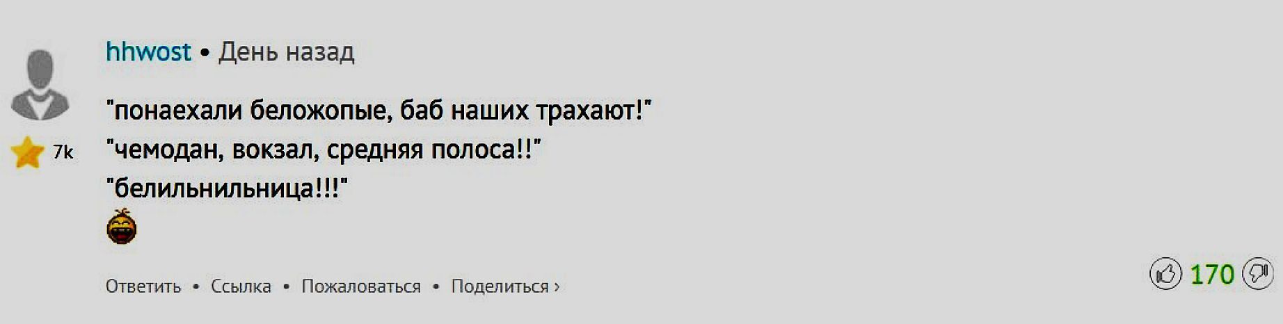 А напоследок представляю вам абсолютно гениальный комментарий в духе нашего ошпаренного времени.