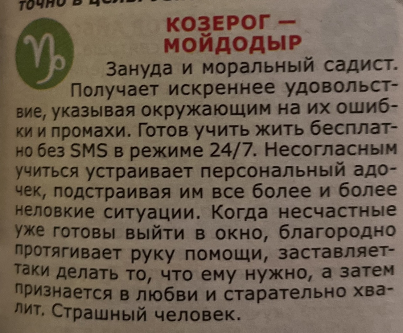 Я не козерог, но согласна. Очень хорошо их знаю. Любят учить, а стрельцы терпеть не могут, когда их учат и контролируют 🙂
