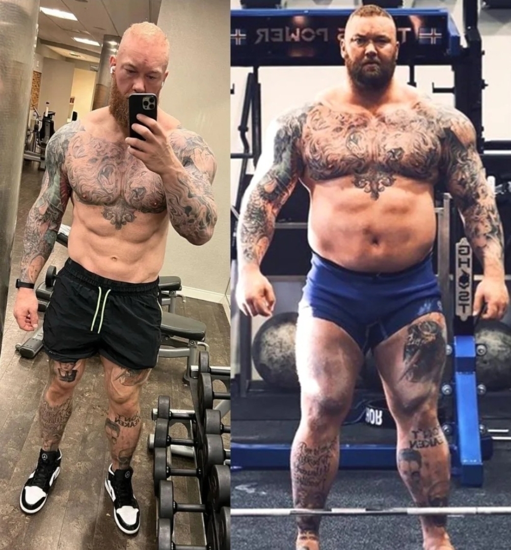 Хавтор Бьёнсон мировой рекордсмен жмёт и тянет поболее (рекорд в становой 501кг) и тем не менее он похудел и стал выглядеть намного лучше!
