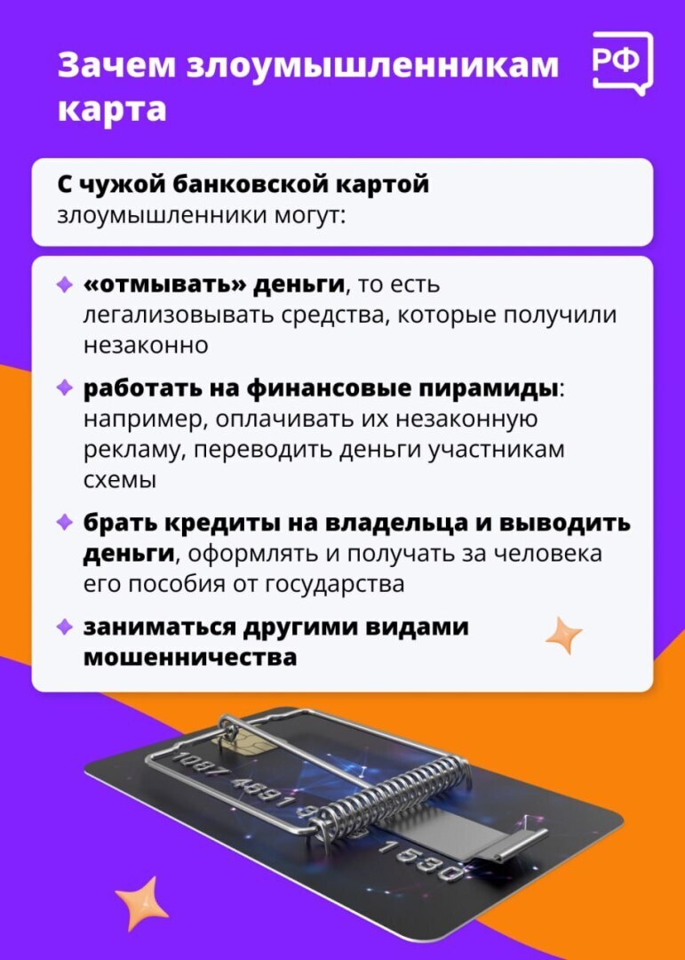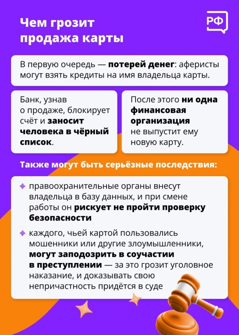 Вот об этом сегодня опубликовал запись ТГ-канал Объясняем.рф (https://t.me/obyasnayemrf/20616?single). В интернет паутине появились предложения: продайте банковскую карту за 50 тыс.руб. Я о подобном слышу впервые, не видела такие объявления. Делать этого нельзя, по крайней мере, если включен овердрафт, вы войдете в минус, минус это ваш кредит с повышенными банковскими ставками.