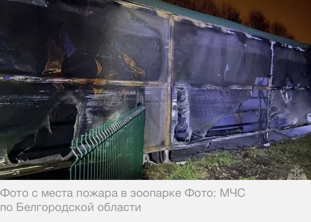 В результате пожара в зоопарке в Старом Осколе который возник на данный момент по непонятным обстоятельствам погибло 5 зебр , еще одну из них пытаются поймать спасатели , по предположительным данным скорее всего загорелся тент , но в данный момент обстоятельства трагедии уточняются - смотритель зоопарка увидев возгорание уже не мог ничего сделать , тк пожар был очень сильным . Ждем финала расследования, эта трагедия потрясла всех жителей города Старый Оскол . Надеюсь 🙏🏻 что зебра 🦓 будет найдена , и ее спасут . Скорее всего одна жить далее она не сможет, потому что зебры стадные животные, и им нужно общение, будем надеяться что все будет хорошо .