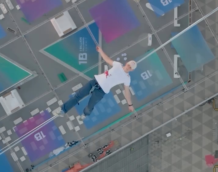 Ничего себе риск. Ну зависнет он на канате со страховкой, дальше что ?