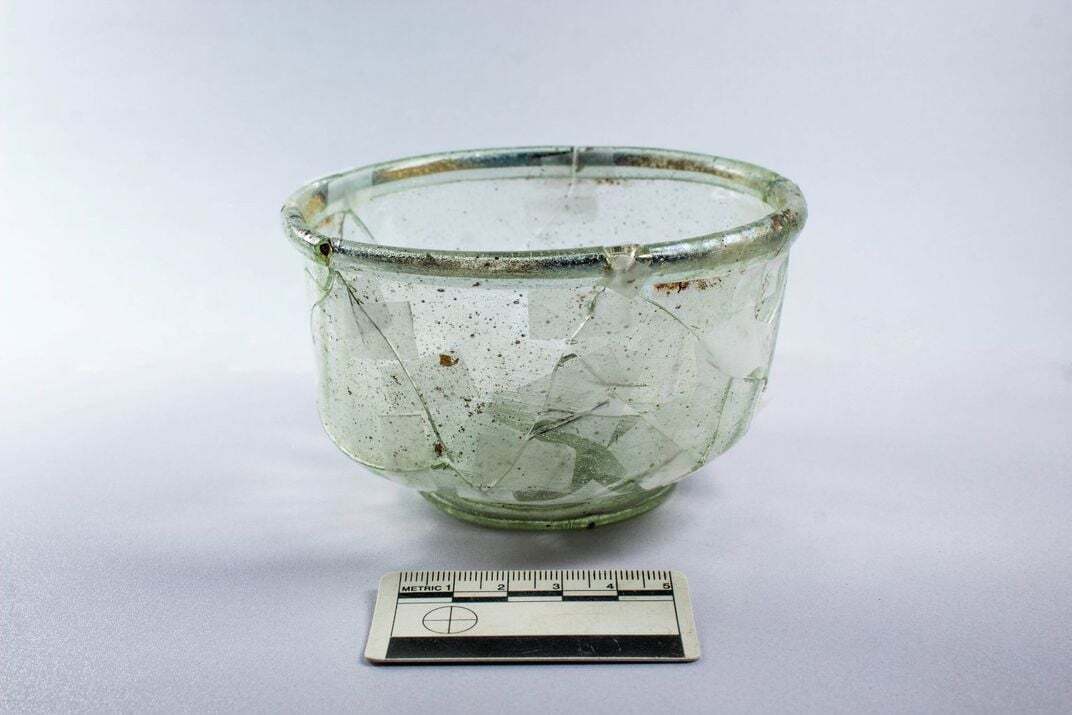 Погребальные принадлежности, такие как этот стеклянный сосуд, были найдены захороненными рядом с гробом ⚰️