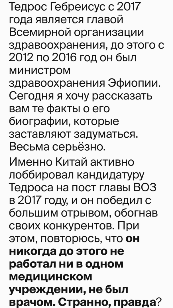 и его "ставленник" глава ВОЗ Тедрос Гебреисус