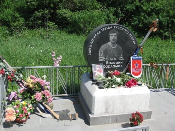 Памятный знак на месте гибели легендарного хоккеиста