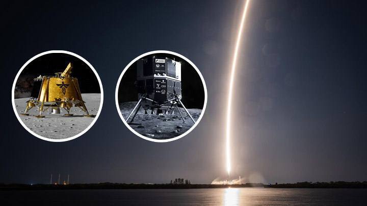 SpaceX запустила два частных лунных модуля на одной ракете