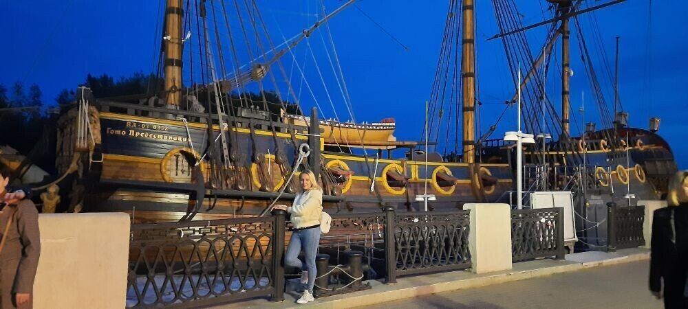 Здесь судно, как раз таки во время реставрации, но, к сожалению, это было в прошлом году , а точнее осенью 2023 года, и в новом свете корабль я пока что видела только на экране! Моя дочка тоже признала местность и вскрикнула от удивления и восторга - о мы тут были!