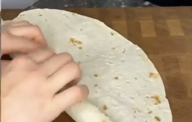 Скручиваем лист лаваша в плотную трубочку, а затем: