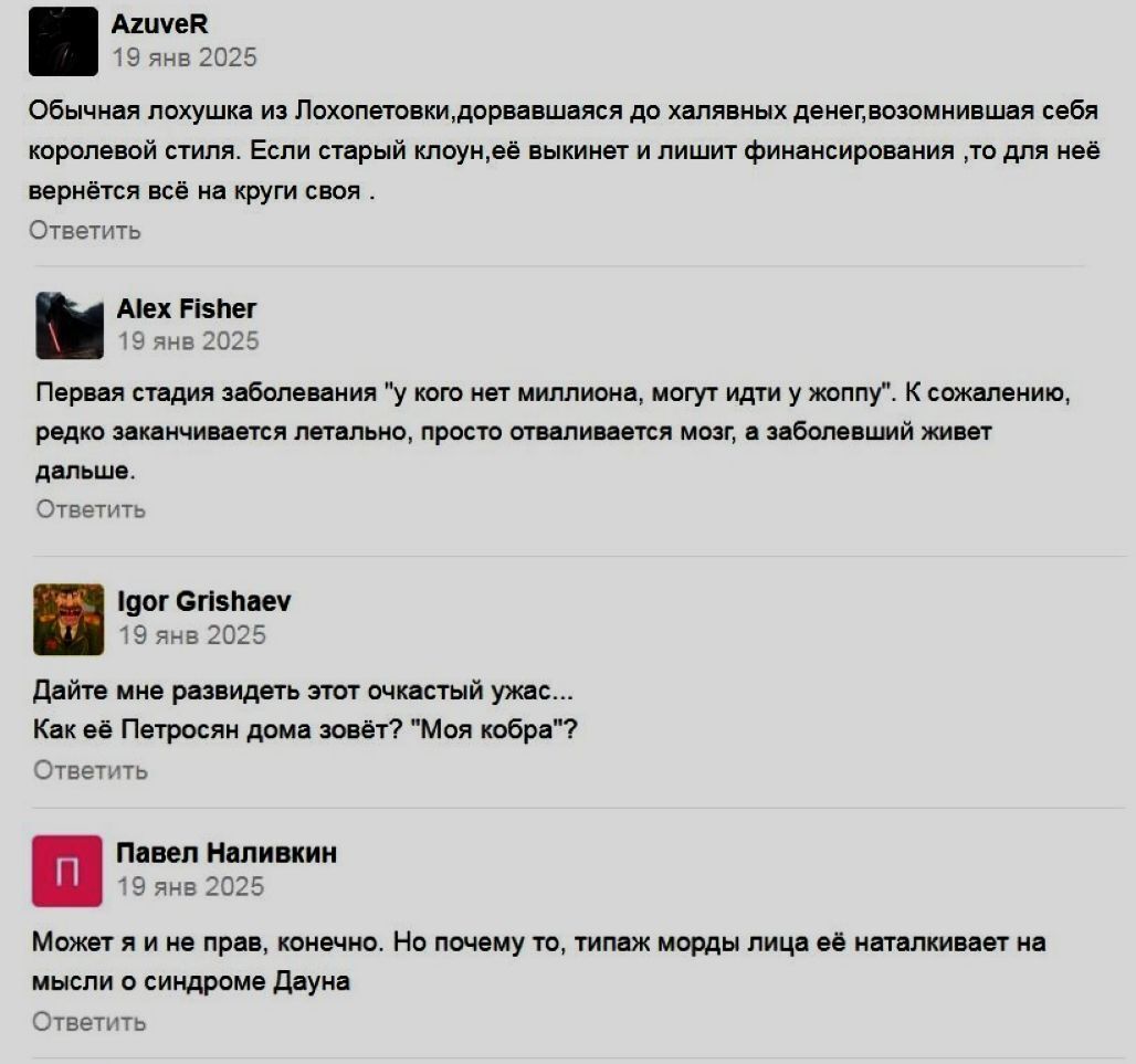Странное дело, но высокородную, ослепительную красавицу поняли не все и начали кидать «какули на вентилятор». Но это шевеление нищебродов только рассмешило истинную дворянку и она провела «глобальнейшую зачистку» своих профилей от «невменько» и наступила полная справедливость.