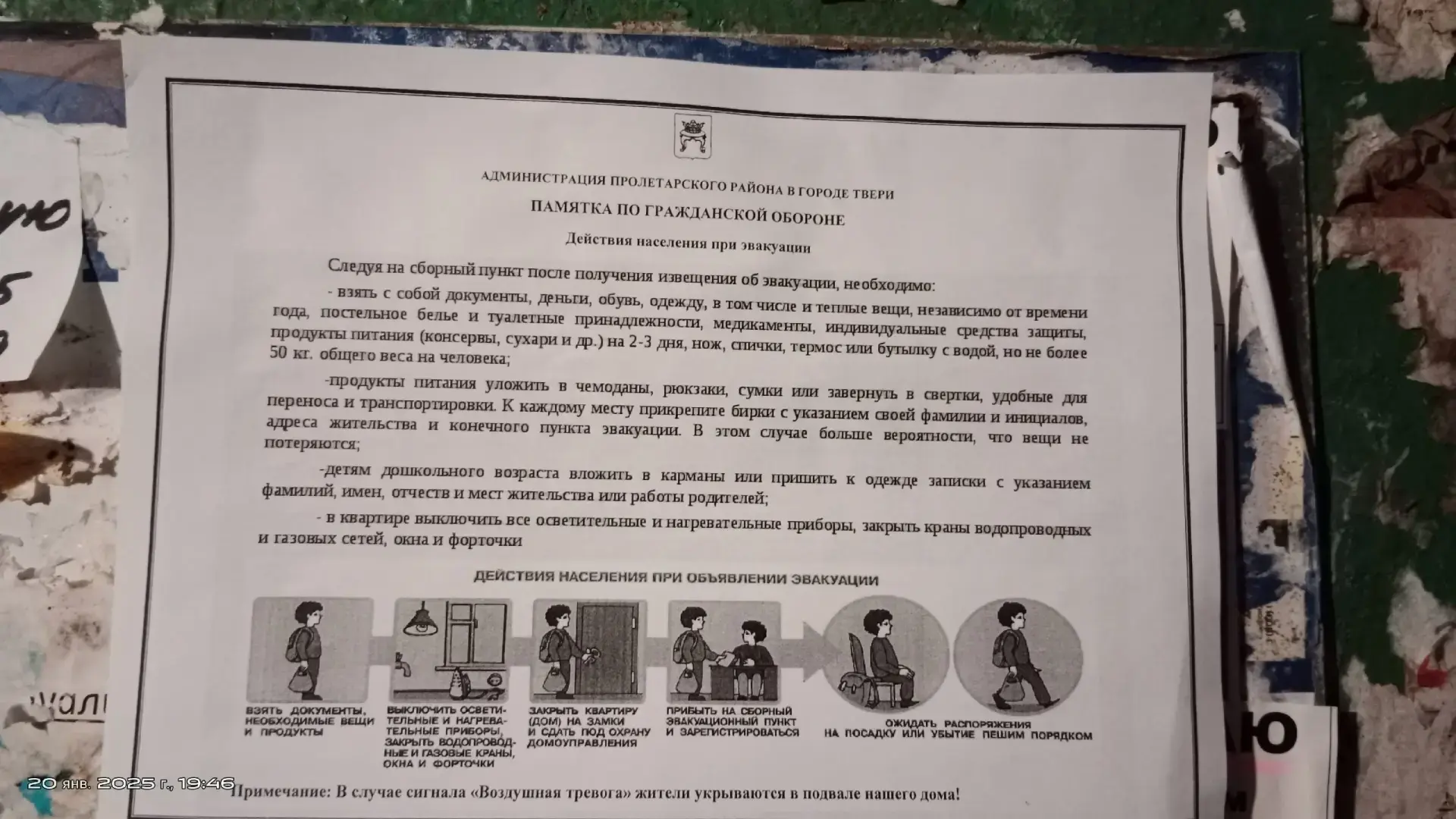 В посёлке "Первомайский" города Твери на подъездах жилых домов появились объявления от Администрации Пролетарского района города Твери, на которых распечатана "ПАМЯТКА ПО ГРАЖДАНСКОЙ ОБОРОНЕ".