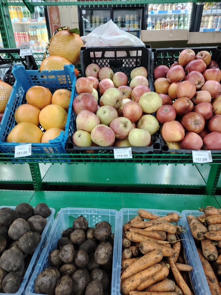 А вот как не странно, яблоки не подорожали остались в то ценовой категории от 110 до 157 руб. Свекла как и картофель стоила 50 рублей в декабре прошлого года, а с января этого года стоит 60–65 руб. в зависимости от сорта видимо и поставщика.