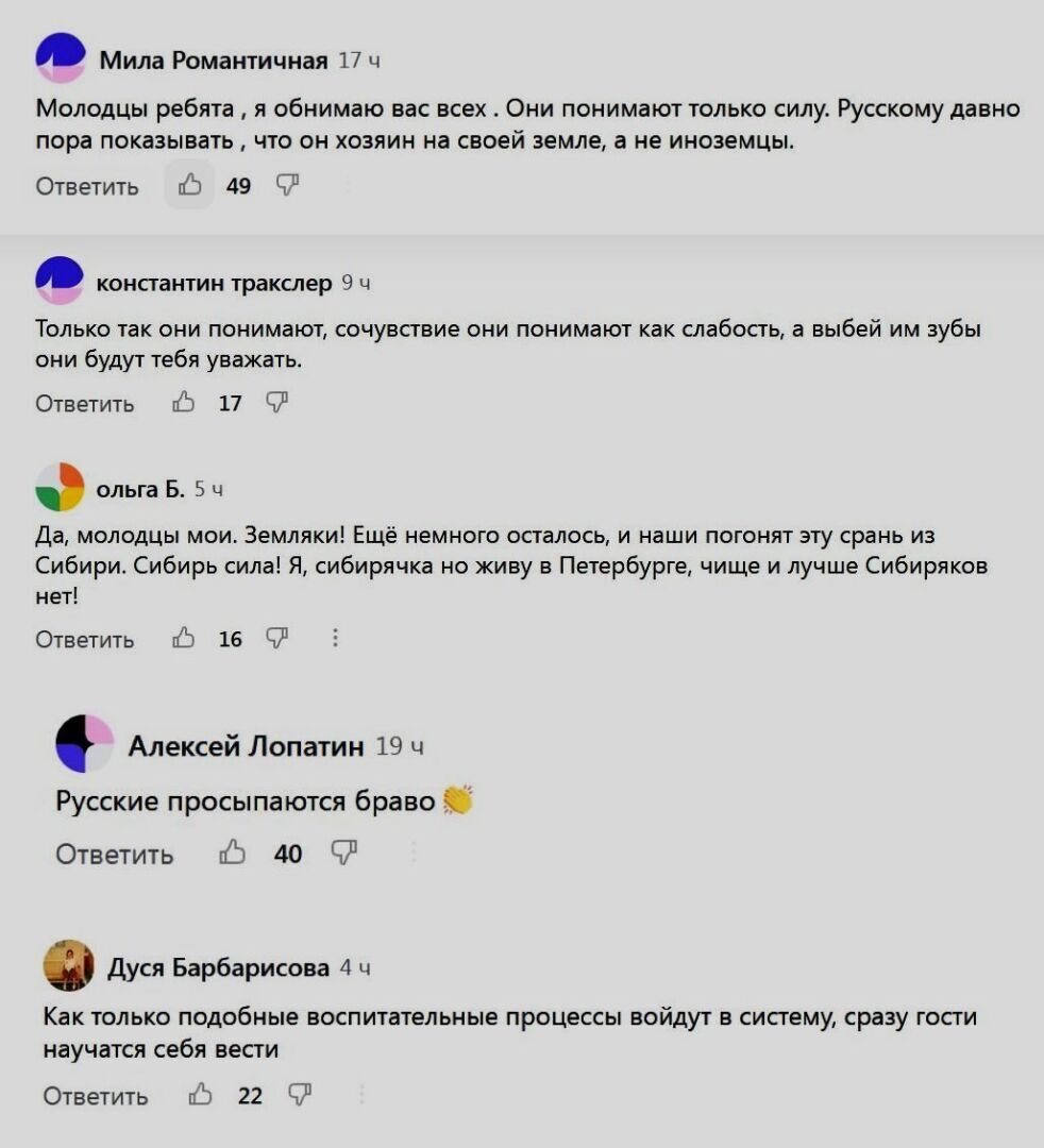 В данном случае, даже у самых конченных и толерантных международных людолюбов нет повода поднимать традиционный вой о самосуде, расправе и разжигании, так как всё было просто - группа пьяного хамла была изгнана из общественного места рядовыми гражданами, с использованием подручных средств. В этом и заключается народное правосудие.