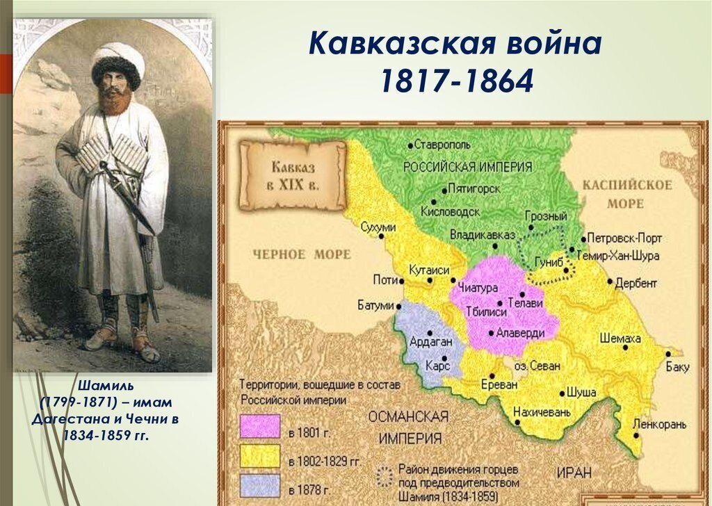 Кавказская война (1817–1864). Но в тоже время в 1801 году Грузия была превращена в Грузинскую губернию Российской империи.