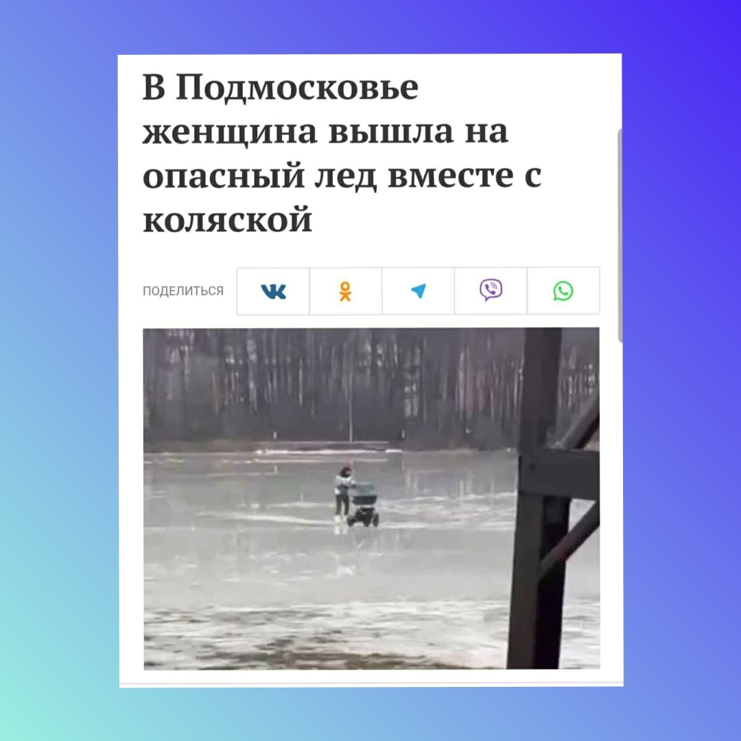 Хотя этот случай не первый, ещё в телеграмме показывали видео, как там мужчина катает коляску на льду. На коньках был он или нет, это не смогла увидеть, не очень хорошее качество видео. Неужели эта молодая мать, посмотрев этот ролик, решила повторить то же самое?