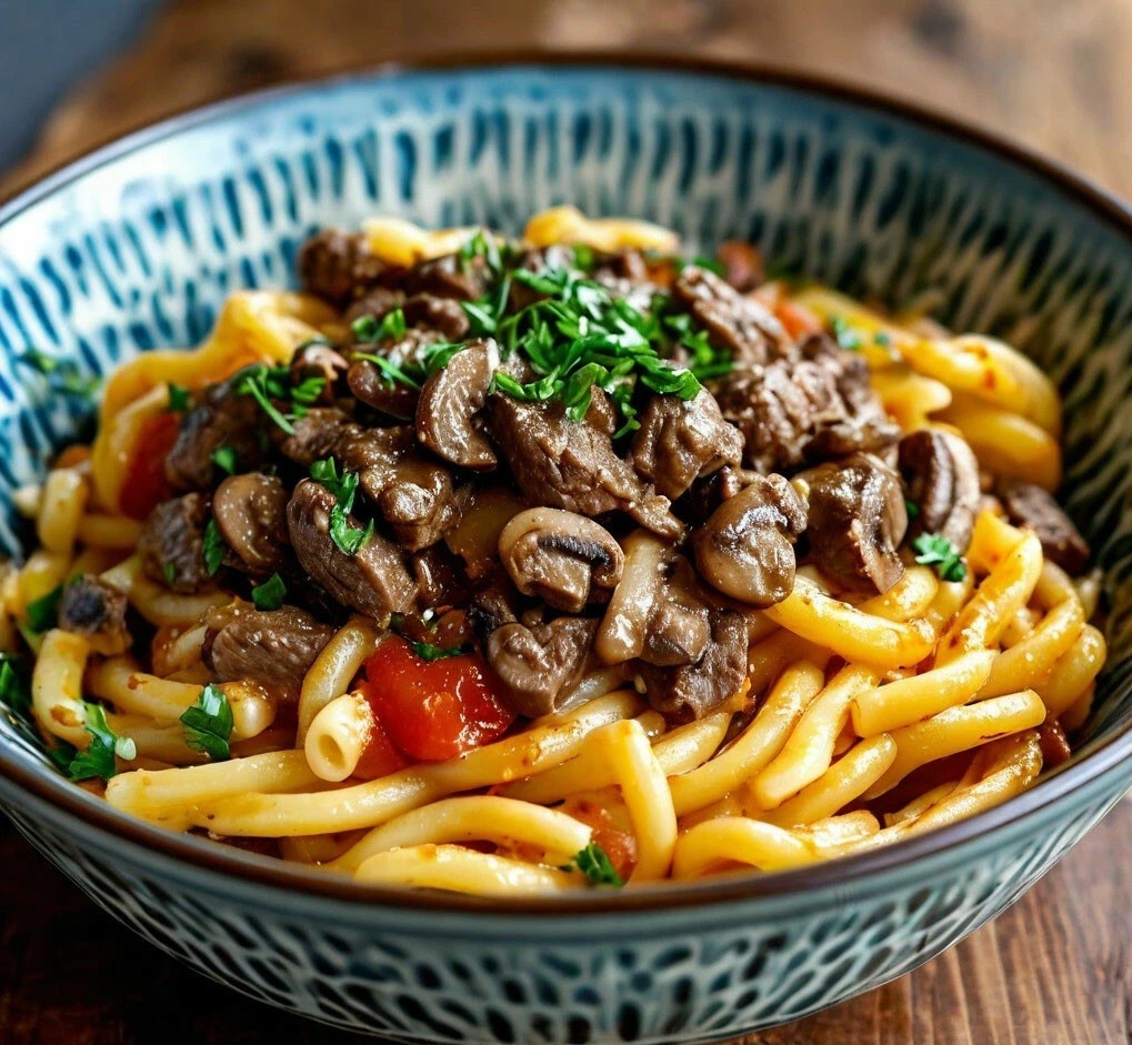 Это вкусное и питательное блюдо, которое сочетает в себе макароны, куриную печень и грибы. Приготовление занимает около 40 минут.