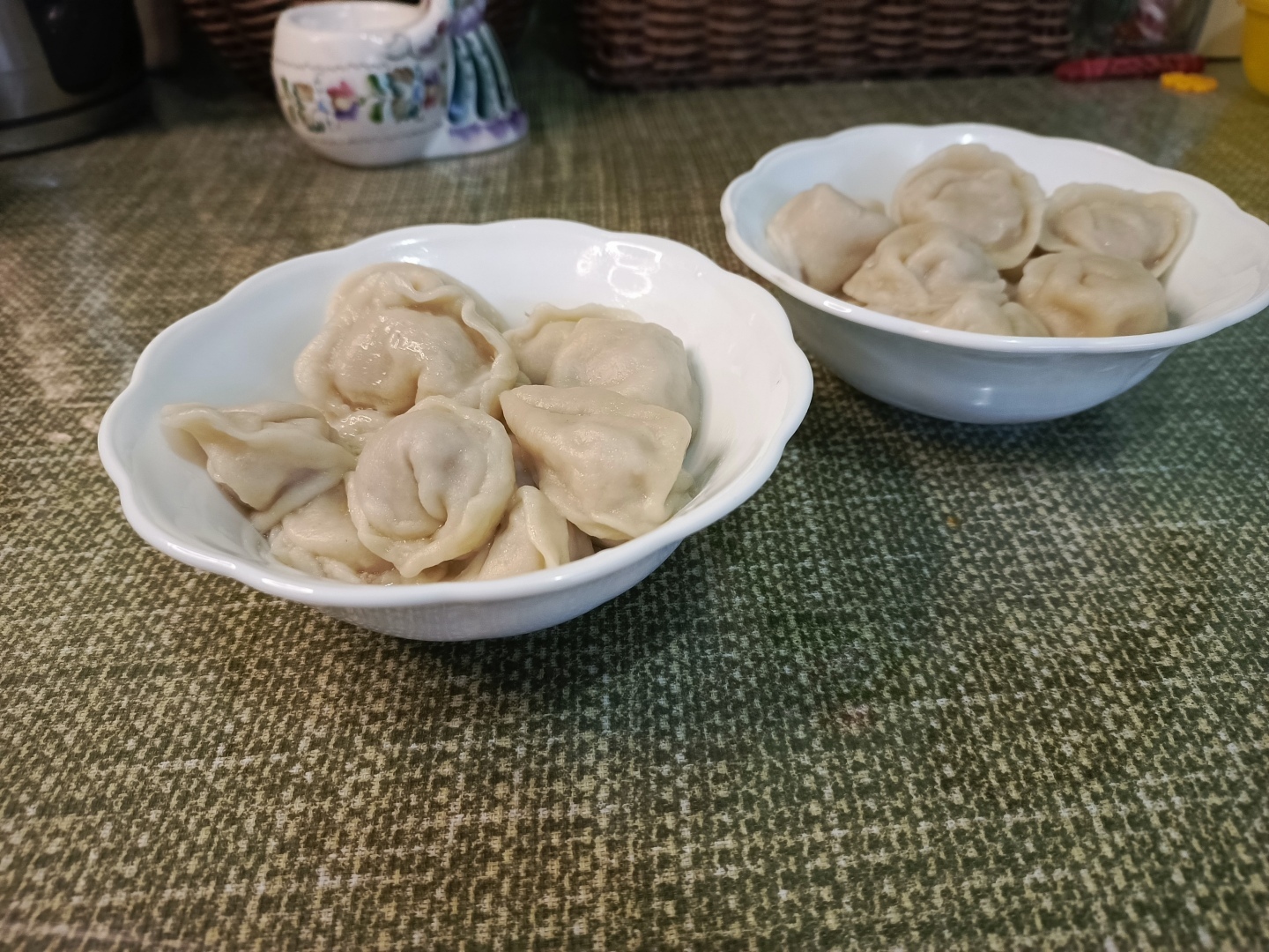 Посидели, пообщались, посмеялись. Настроение у всех отличное! Налепили немного, фарш и тесто ещё остались. Время уже позднее, не заметили, как пролетело.