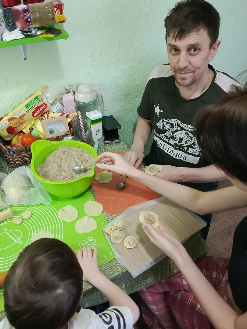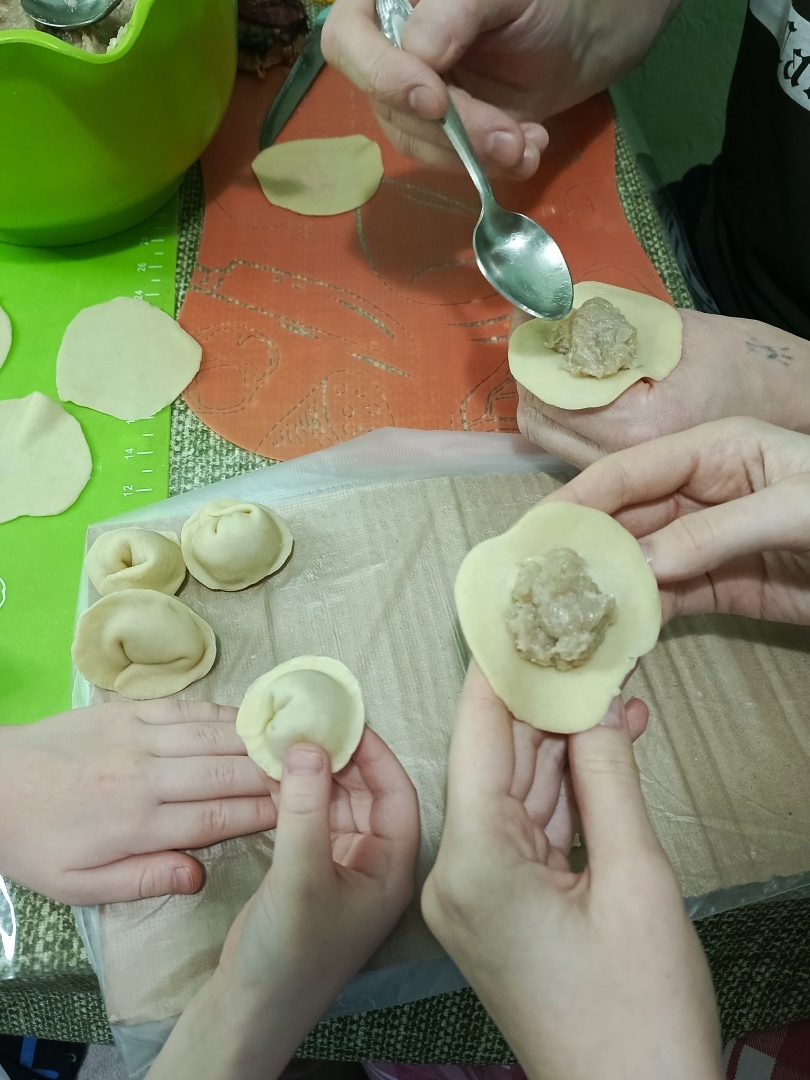 Добрые семейные ценности. Лепим пельмешки всей семьёй