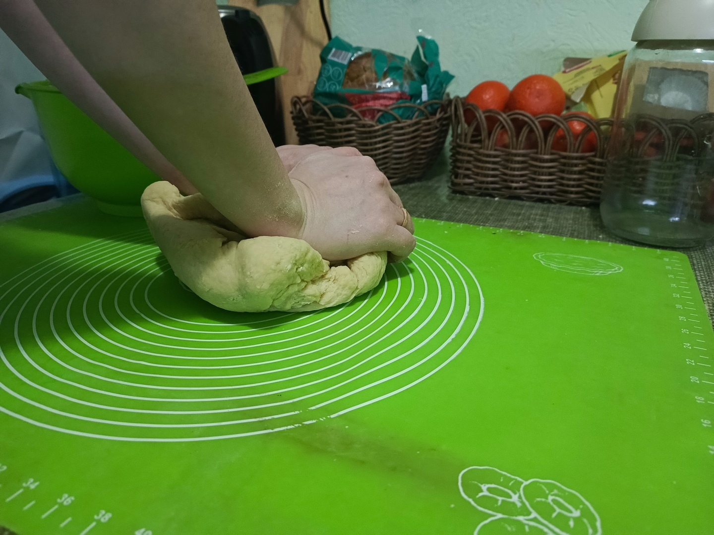 Кстати, тесто супруга делает заварное. Оно отлично слепляется и не нужно дополнительно ничего посыпать мукой.