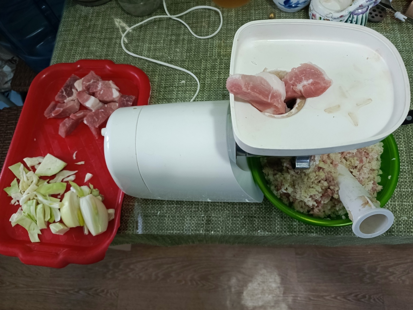 На этот раз решили сделать мясо-капустные. Благо, мясорубка теперь электрическая.