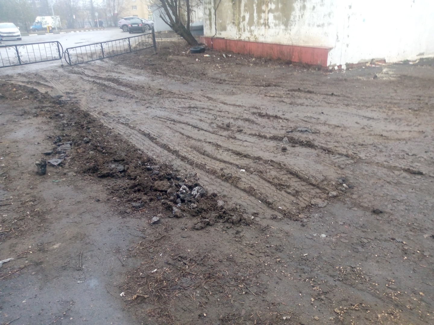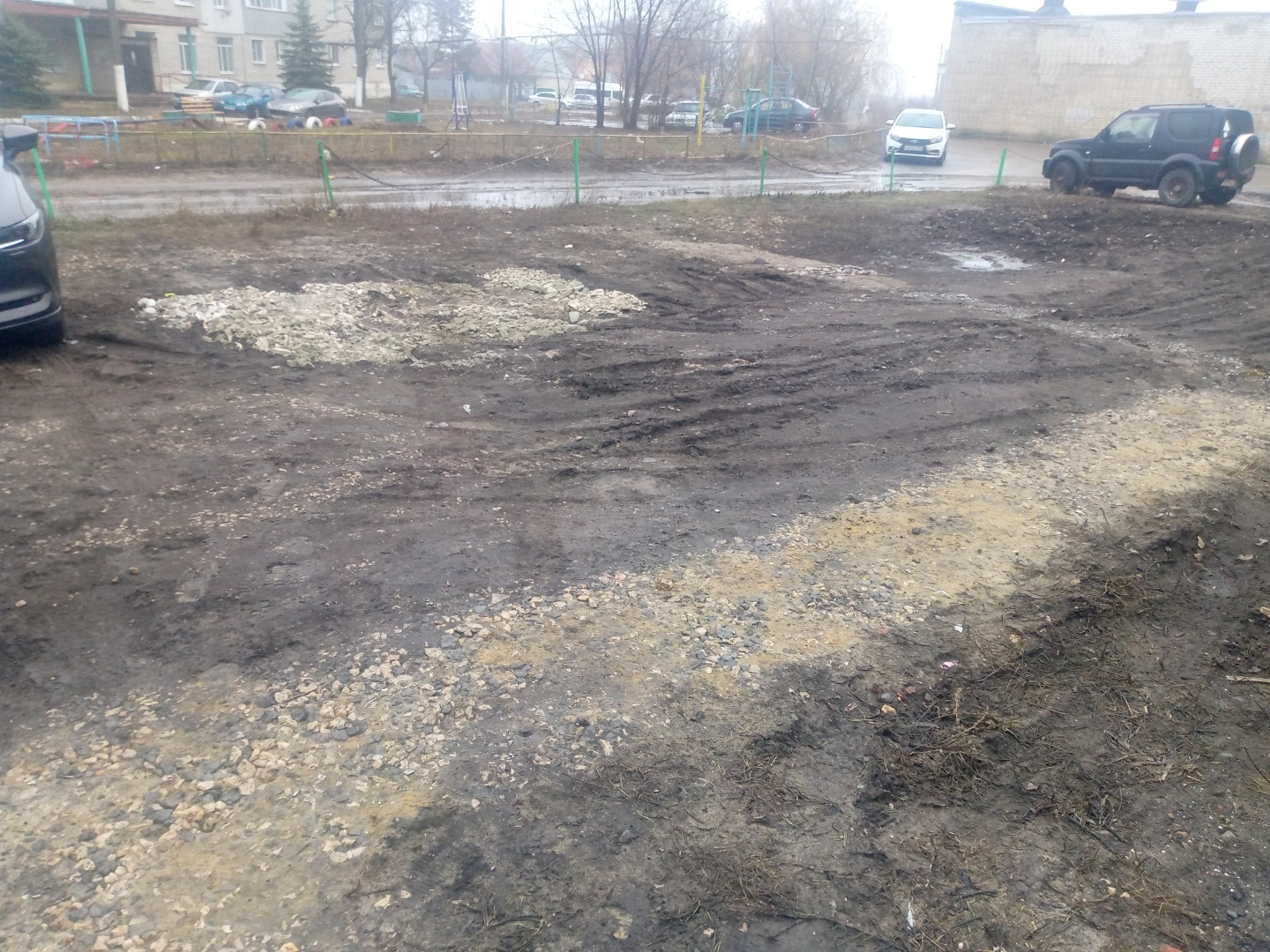 Локация на фото не указана поэтому понять, по каким причинам там лужи и якобы разбитые дороги, невозможно. На одних фото, например, видна грязь на площадках, где никогда и не было дороги.