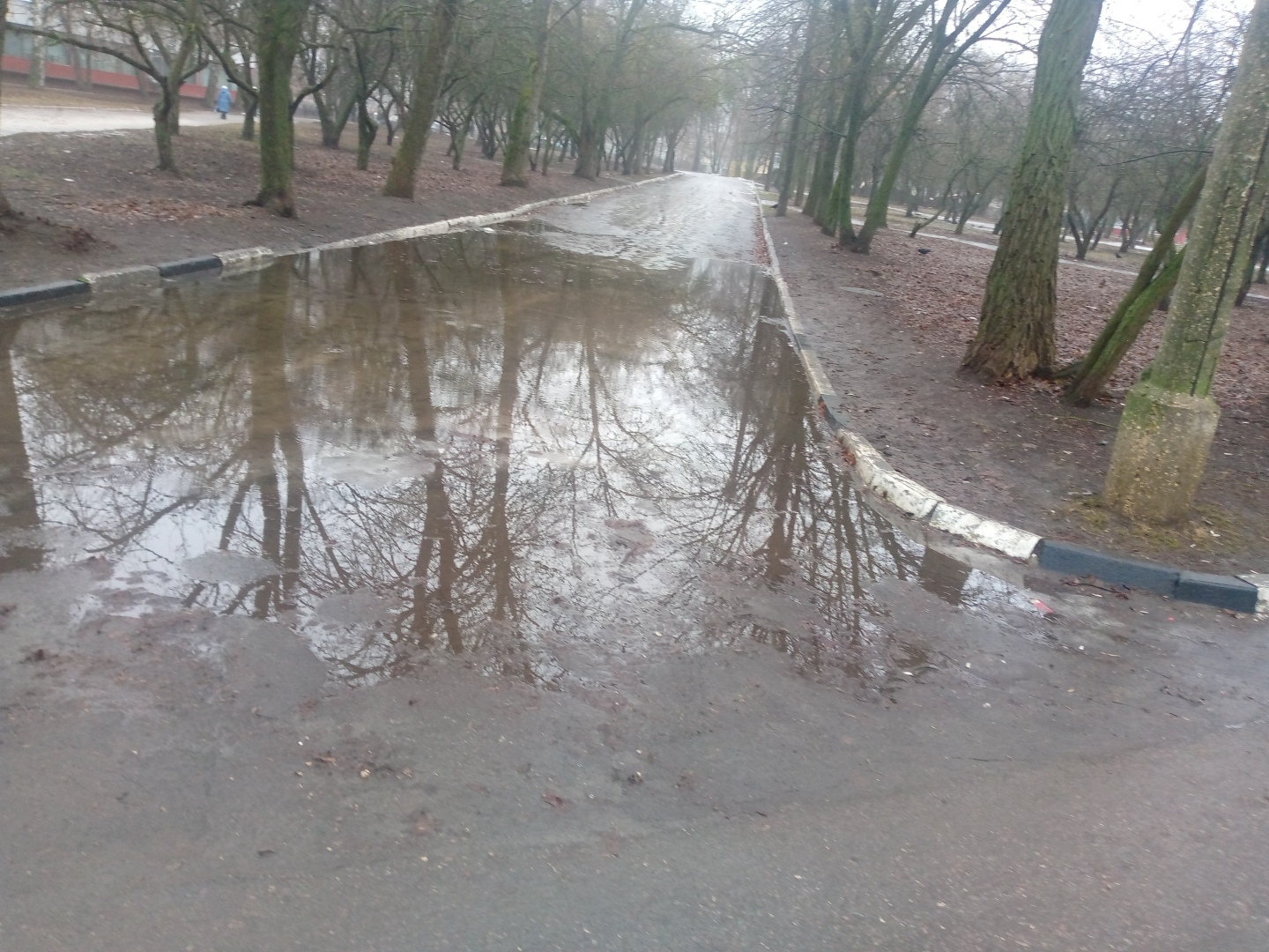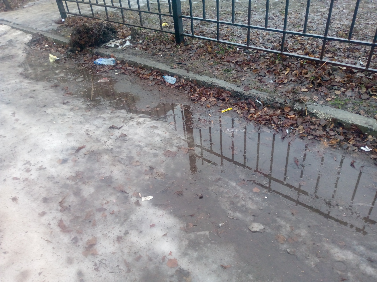 К слову сказать, школа ребёнка располагается всего лишь в 700 м от дома, но пришлось пройти целый квест. Лужи, а под ними лёд, если обходить то непременно попадёшь в грязь. Если идти по лужам то аккуратно по щиколотку в воде. Мусор валяется прямо на дороге! Ощущение апокалипсиса хотя мы живём далеко от боевых действий.