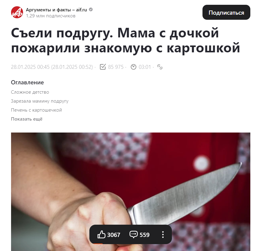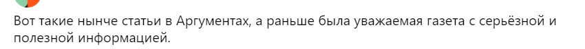 Я всегда считала «Аргументы и факты» достойным и благородным изданием. Но то, что прочитала вчера на их странице в "Дзене", повергло меня в шок! Уж если такие серьёзные издания во всех деталях излагают подобное, то что говорить о других?
