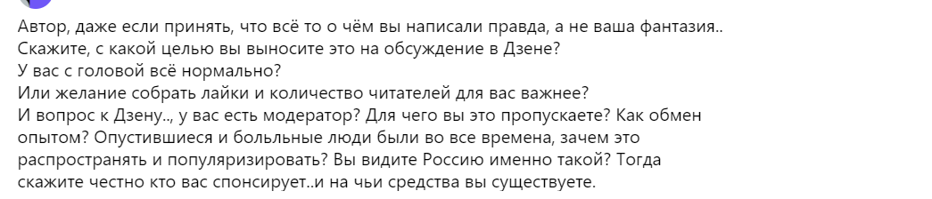 Радует, что среди пользователей "Дзена" нашлось довольно много тех, кто раскритиковал эту писанину: