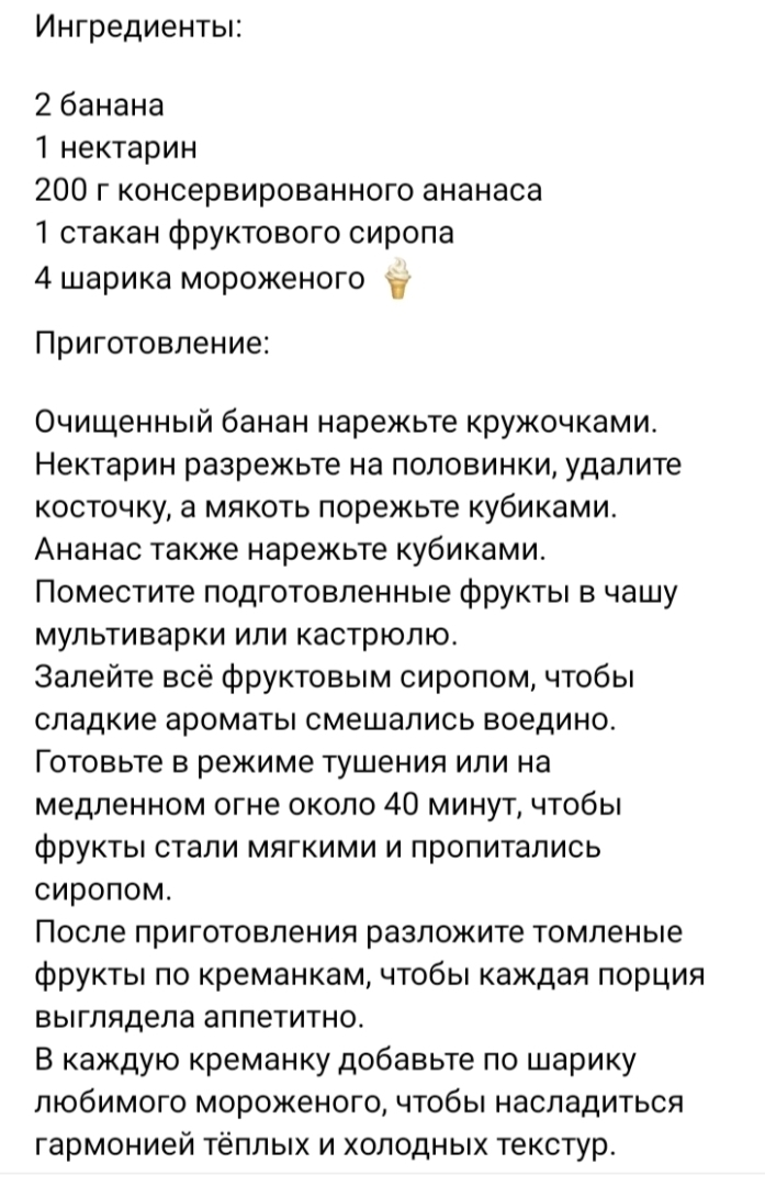 Люблю мороженое с фруктами, но предпочитаю ягоды с кислинкой. Ананасы и бананы слишком сладкие, потому десерт немного приторным выходит 😀 на любителя