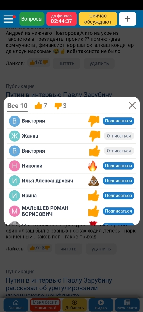Почитав последние 4 комментария я как-будто 1-го канала пересмотрелся.