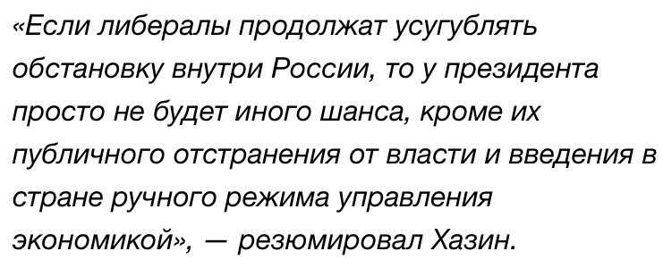 В таком случае экономист допускает тот момент, когда президент России просто отстранит либералов от инструментов власти и значительно ужесточит контроль над экономикой: