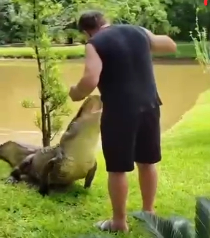 Это не встреча крокодила Гены с Чебурашкой. Мужчина решил поделиться своим обедом с рептилией.