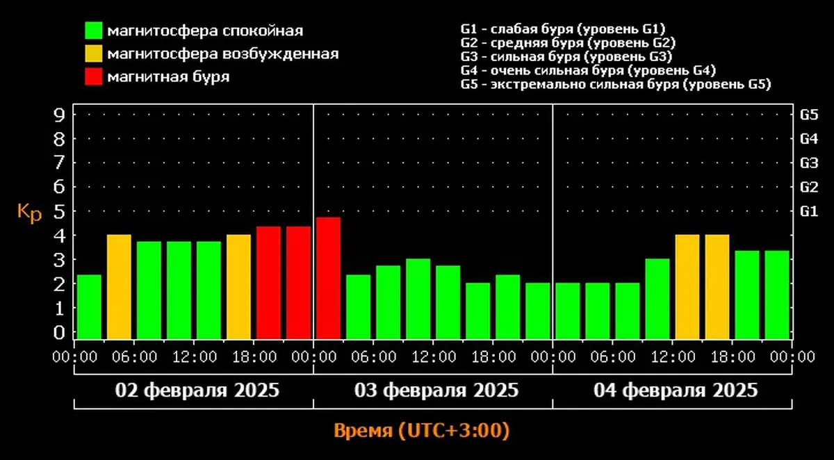 Магнитная буря 3, 4 и 5 февраля 2025 года: рекомендации врачей-специалистов и народные рецепты. Зеленый уровень с красным пиком