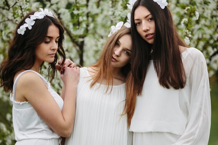 Источники фото: сайт Freepik девушка в венке, три девушки, девушка на фоне с цветком