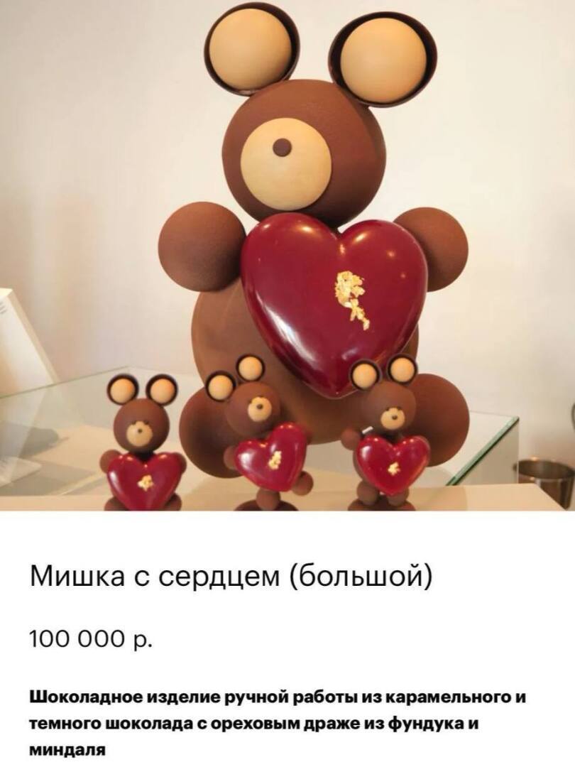 Десерт в виде мишки за 100 000 рублей подают в московском ресторане Lila Pastry. В нем 27 ТЫСЯЧ килокалорий, весит он 4,5 кг, а в высоту — целых 60 см