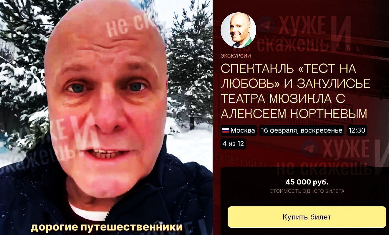 Алексей записал радушное видео-приглашение, для носителей пятитысячных купюр, ласково назвав их «путешественниками», с намёком на духовное родство со странствующим музыкантом. В конце видео представлен кусочек представления, с которым Кортнев катался по Израилю и Грузии вместе с конченным гадёнышем, актёром-иноагентом Семеном Трескуновым*. Так, что уже можно слегка представить всё величие таинственного, но другого мюзикла, который увидит лишь кучка платёжеспособных счастливчиков.