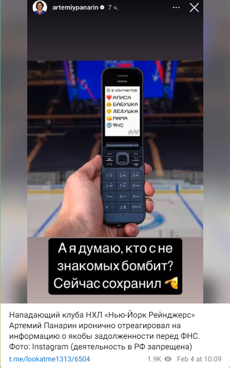 «А я думаю, кто с незнакомых номеров бомбит?». Хоккеист Панарин и Nokia: юмор в ответ на налоговый «звонок». Известный хоккеист Артемий Панарин имеет задолженность перед Федеральной налоговой службой (ФНС) на сумму всего то около 75 тысяч рублей.