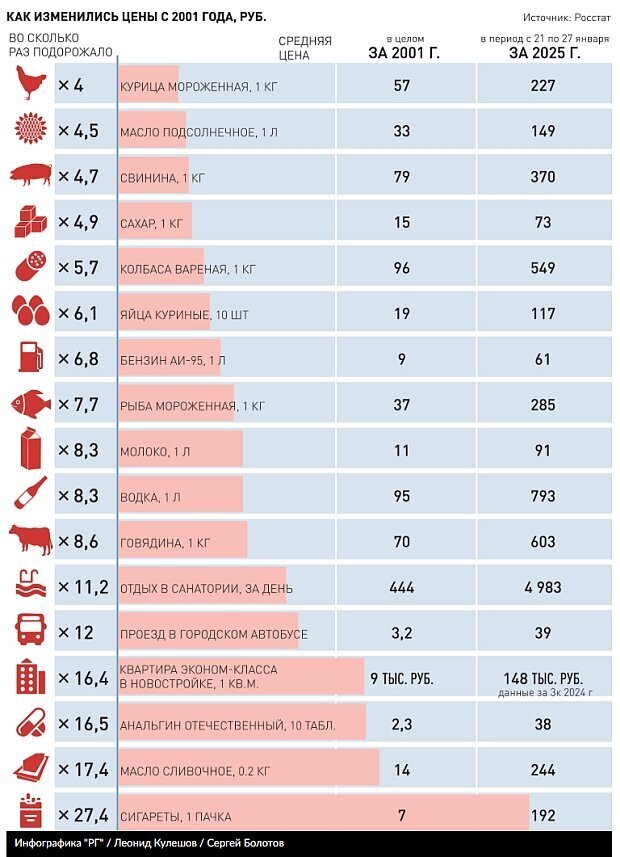 Хлеб подорожал примерно в 40 раз, масло в 30 раз, даже минералка раз в 25.